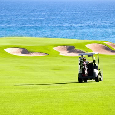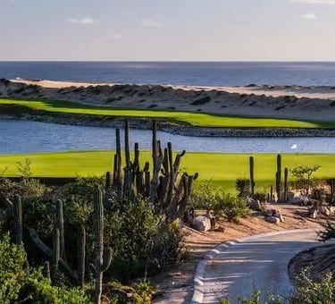 Jornada de Golf Independiente: Traslado privado hacia Solmar Golf Links. Ronda de juego en este exclusivo campo diseñado por Greg Norman, caracterizado por su trazado sobre dunas y vistas espectaculares al Océano Pacífico.